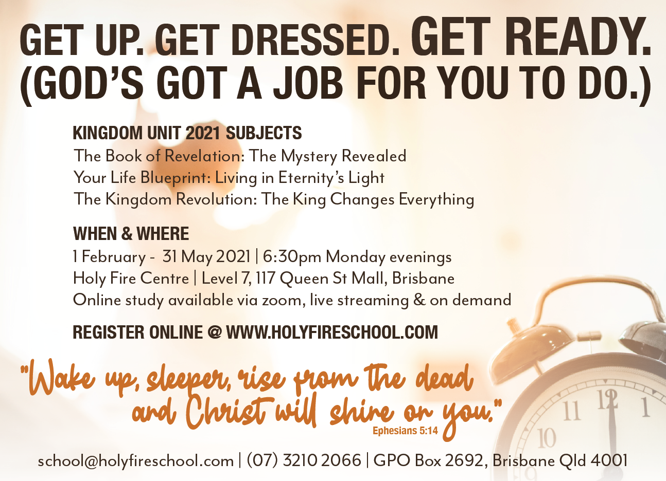 We’re excited to announce our next semester––The Kingdom Unit 2021––beginning 1 FEB. Registrations are now officially open. A big thanks to Anna Gerhauser for the love and creativity she put into the design. Each semester she prays that God would give her a picture and message to communicate. We can use your help in getting the word out. If interested, please register as soon as possible. Thanks! For more: www.holyfireschool.com