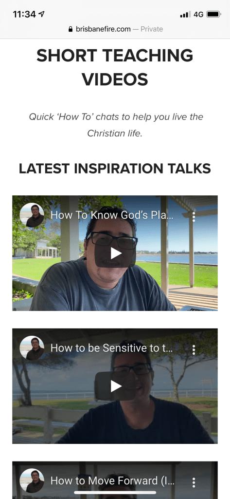 Posted on March 26, 2021 Inspiration Talk Video Library Check out all of my short Inspiration Talks. I also make these as discipleship tools to help you teach others. The whole library has many different topics: https://brisbanefire.com/videos Share this: Click to share on X (Opens in new window) X Click to share on Facebook (Opens in new window) Facebook Click to email a link to a friend (Opens in new window) Email Click to print (Opens in new window) Print Click to share on LinkedIn (Opens in new window) LinkedIn Like Loading... Related