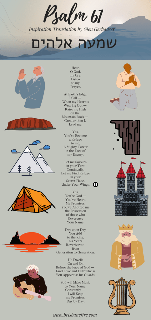 Posted on December 16, 2021 Hear, O God – Psalm 61 (Infographic) I thought someone may need this today. I enjoyed making it a few weeks ago. Expand to read the small print. You can click to open and press to save to your device. Share this: Click to share on X (Opens in new window) X Click to share on Facebook (Opens in new window) Facebook Click to email a link to a friend (Opens in new window) Email Click to print (Opens in new window) Print Click to share on LinkedIn (Opens in new window) LinkedIn Like Loading... Related