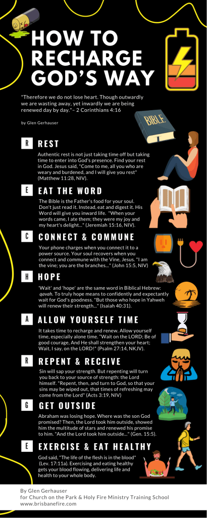 Morning Thought: As we come to a close of 2021 and soon begin 2022, it’s a good time to recharge. I know Christmas is busy, but make sure you don’t let it burn you out. I often feel extra tired during this season and I figure you may too. Check out the RECHARGE infographic. It will help. I’ll be putting into practice along with you. Also, this message goes into some more detail: https://brisbanefire.com/messages/recharge-1