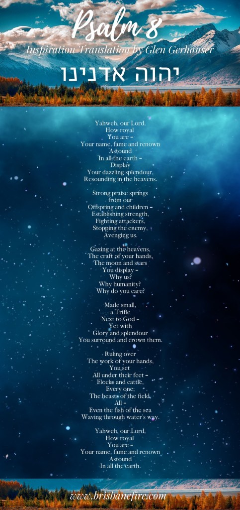 Morning Thought: Some names are scary, like Cancer, Covid and Hitler. Other names inspire, but can lead to idolatry, like a role model, athlete or performer. Listen to how David celebrates Yahweh’s name and nature in Psalm 8. There’s no greater name than God’s own name. Let’s lift up his name today over every other name. Click on the infographic below and press to save to your device.