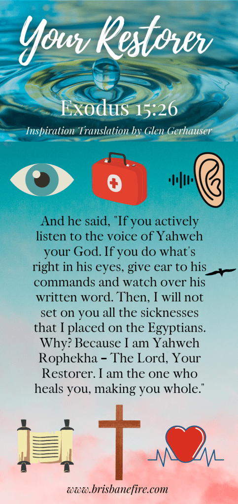 Posted on March 14, 2022 Your Healer (Infographic) Morning Thought: Yahweh is your healer (Exo. 15:26). Share this: Click to share on X (Opens in new window) X Click to share on Facebook (Opens in new window) Facebook Click to email a link to a friend (Opens in new window) Email Click to print (Opens in new window) Print Click to share on LinkedIn (Opens in new window) LinkedIn Like Loading... Related
