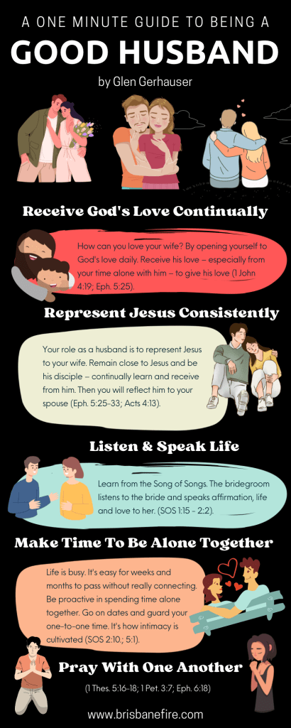 Morning Thought: Our latest infographic is a one minute guide to being a good husband. These are some of the things God taught me through the years. It’s also good preparation for marriage. If you’re not married, see the Lord being like this to you.
