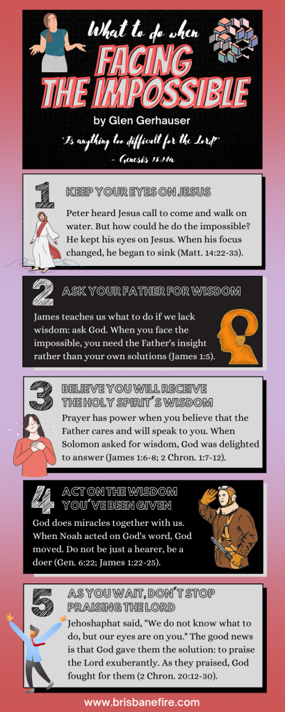 Morning Thought: What do you do when you’re facing the impossible? Check out our latest infographic: Facing the Impossible. For more insight, you can listen to this week’s message with the same title. (Tap to open. Press to save. Pinch to zoom in and out.)
