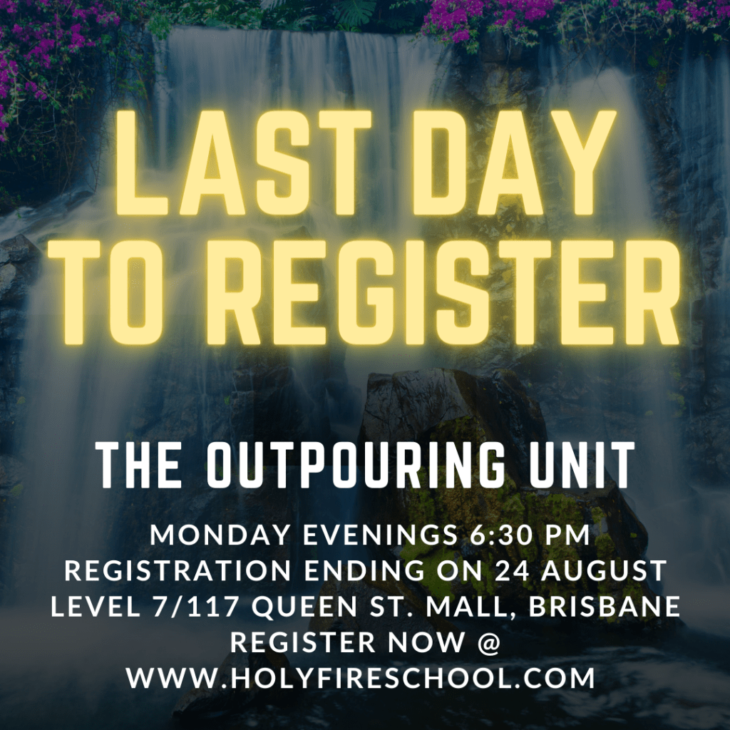Posted on August 24, 2023 Last Day to Register It’s the last day to register for our Outpouring Unit. For more details or to register, please go to www.holyfireschool.com Share this: Click to share on X (Opens in new window) X Click to share on Facebook (Opens in new window) Facebook Click to email a link to a friend (Opens in new window) Email Click to print (Opens in new window) Print Click to share on LinkedIn (Opens in new window) LinkedIn Like Loading... Related
